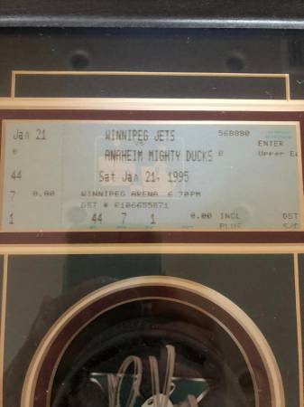 Paul Kariya 1st NHL goal ticket and signed puck frame. Never taken out of the box. Measures 16” high. Price is $400. NO SCAMMERS!!!!