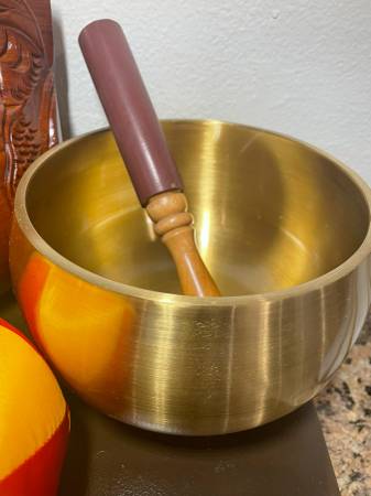 ESTATE ITEM 1 owner Items-storaged for many years Buddhist temple drum (wooden fish) with striker and brass singing bowl. Hand-carved, beautifully detailed, ideal for meditation, decor, or sound...
