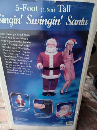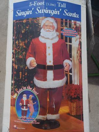 NEW 5 foot Singing Swingin Santa Gemmy https://youtu.be/OVBSpttgwmY Santa sings and dances to entertain your guests! Motion sensor allows him to jump to life when someone passes by! Santa! 5' tall....