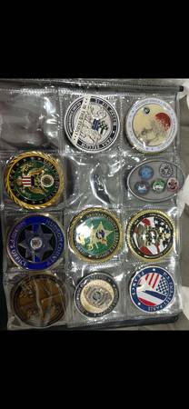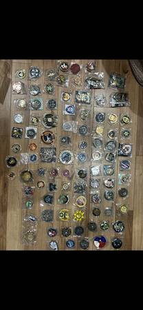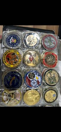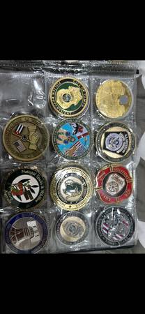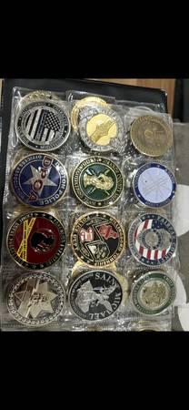 My police coin and military coin and firefighters are from The coin I have ate Texas and San Francisco and Utah and Los Angeles and Kansas and North Carolina and South Carolina and Florida police and Boston and Colorado and New York police Orange County and San Diego police department Canda police Tennessee police phoenix police Los Angeles police Oregon police Milwaukee police department Georgia police department and have a lot military coin and well and firefighters coin as well. Will sale for each 25 to 40 to 50 per coin each coin are depending on coin and also if you want buy random coin I can sale 10 coin for 150 for 10 coin that random police and firefighters and military coin as well. If your interested check it out in person I can meet up