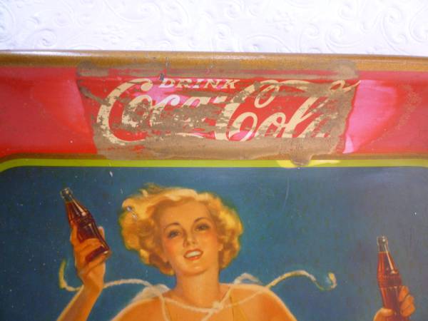 Authentic Coca Cola 1937 Metal Tray 'Model Running on Beach' -...