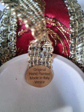Set of two ornate Venetian masks with intricate designs. Venetian Joker Clay Mask 6" tall X 6" wide. Venetian Clay Carnival Mask 4" tall X 3" wide. "Original Hand Painted Made in Italy Venice". Like...