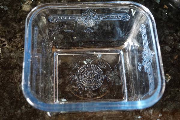 ・Refrigerator Dish ( 5" by 4 1/2" by 3 1/2" tall), No Lid