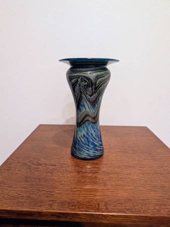 Unique Hand Blown Art Glass Vase 11” – signed by artist Henry Levine, Throne Ridge Studios, Ohio