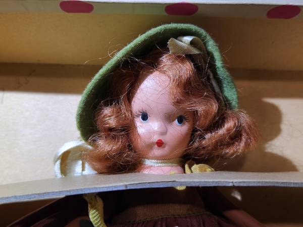 Nancy Ann Storybook Doll 92 Seasons Series, "Autumn", with original box. Doll is 5 1/2" tall, has jointed arms, clothing and doll are in good condition. Box lid has some edge splits on one side. $24...