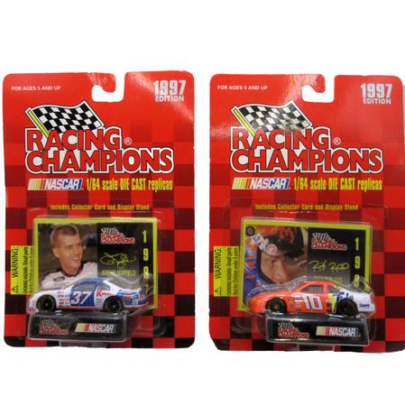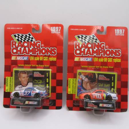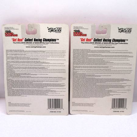 I am selling two 1997 Racing Champions NASCAR 1/64 Stock Cars. Both are new and in original packaging. There is some minor wear and bending on the cardboard backing. Please see photos to assess the condition yourself.