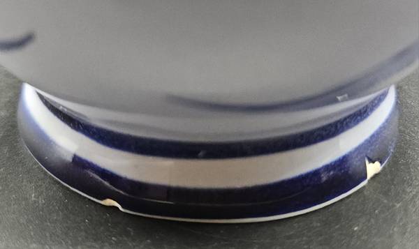 Has two small chips at the bottom. Holds 12 ounces. Measures 4 1/2" across. 6475 Cross posted. NO HOLDS! If you'd like to pay in advance and pickup later, Venmo or Zelle, that is an option. Cash is still accepted. IT'S NOT SOLD UNTIL PAYMENT IS RECEIVED!