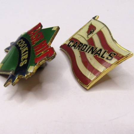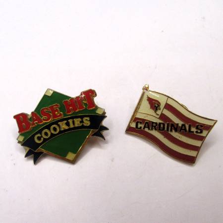 Vintage 1990's– “Arizona Cardinals” and “Base Hit Cookies” enamel Tie Tack / Lapel Pins. They do have some scratching / blemishes from sitting in a box with the other pins. A great gift for any sport memorabilia collector of NFL Football, Major League Baseball items. Please see photos for more details and to assess the condition yourself. Also be sure and check out the other items I have for sale. Thank You.