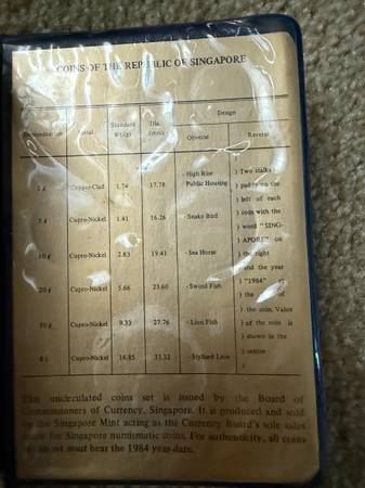 This listing is for an original 1984 Singapore Uncirculated Coin Set issued by the Board of Commissioners of Currency, Singapore.
