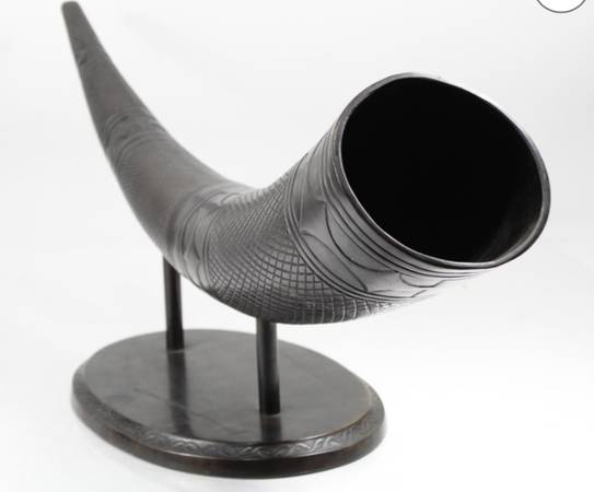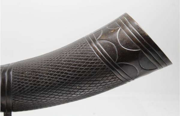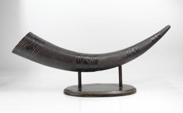 I have a large and heavy hollow cast bronze tusk with eleborate surface designs on a stand. Good Patina. Tusk and stand are connected. The sculpture measures 12.5" high x 29" long x 5" opening diameter. The stand or base measures 13.75" wide x 8.75" deep. Excellent condition.