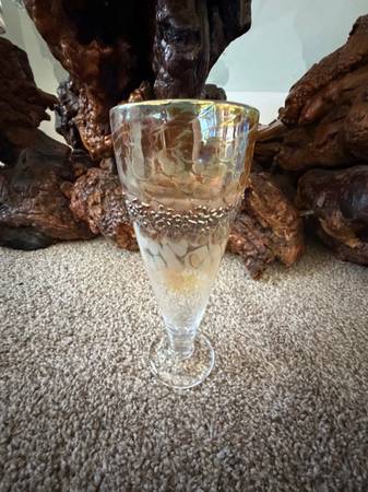 This hand-blown glass vessel is an original studio work by John Barber, a renowned American glass artist based in Laguna Beach, California. The piece bears Barber’s authentic etched signature on the underside of the base, executed in his characteristic fine cursive script using a diamond-point stylus. While the signature does not include a visible year of manufacture, the craftsmanship, iridescent surface finish, and organic design elements are consistent with Barber’s mid-to-late career studio production (circa 1980s–2000s). Each piece was individually made and signed by Barber, not mass-produced, making it a unique example of his artistry. The work exemplifies his hallmark combination of iridescent luster, pulled feathering, and refined form that earned him recognition as one of California’s leading studio glass artists.