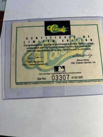 1992 CLASSIC GAMME NOLAN RYAN 10 CARD LIMITED EDITION BASBALL CARDS SET MINT CONDITION