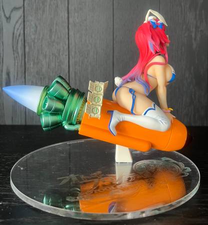 The Otogi Frontier Poose / Pooth 1/7 scale figure Kaitendoh by Mabel, LTD is a collectible figure made in China. Sitting at just under 7 1/2" tall, this highly detailed figure captures the essence of the character seated on a carrot-shaped rocket. In her ever-adorable fashion, Poose lifts her chin and smiles. This figure is highly detailed as seen in her painted nails and hearts in her eyes. There's also great mechanical detail in the rocket. With such attention to detail and quality craftsmanship, this figure brings the character to life and showcases the unique design of the Otogi Frontier universe.