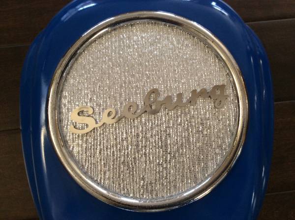 Original from the 1940’s or 50’s Excellent condition, Cobalt Blue, newer paint, gold metallic speaker cloth also a new Radio Shack full range 8 ohm speaker, no chips or scratches, chrome has some small pitting but shines very well, on the back panel it appears to be a 3” hairline crack(repaired) see closeup pic. Could ship UPS.