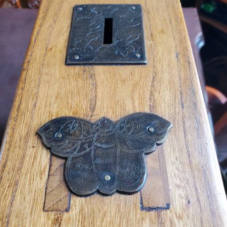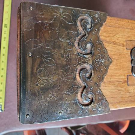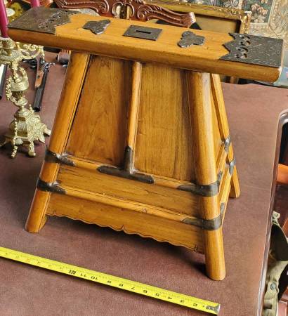 I found an old Chinese cash coin wedged at the bottom on the inside of this when cleaning it one day. Coin will be included. I would love to have a viewer tell me how old or the dynasty showing on the face of this particular coin so that I could add it to this description. Looks like a late 1700s- early 1800s coin, but I am not sure. It is in excellent condition from being protected inside the bench for 150 + years