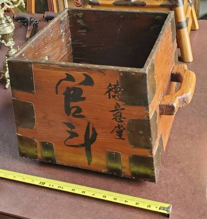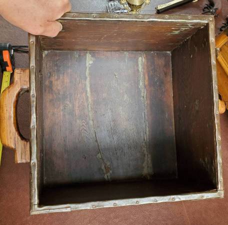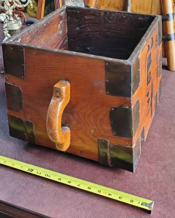 Antique Rice Measure. 19th Century Chinese Wood Dry Measure with metal hardware, Provincial Dou Box.