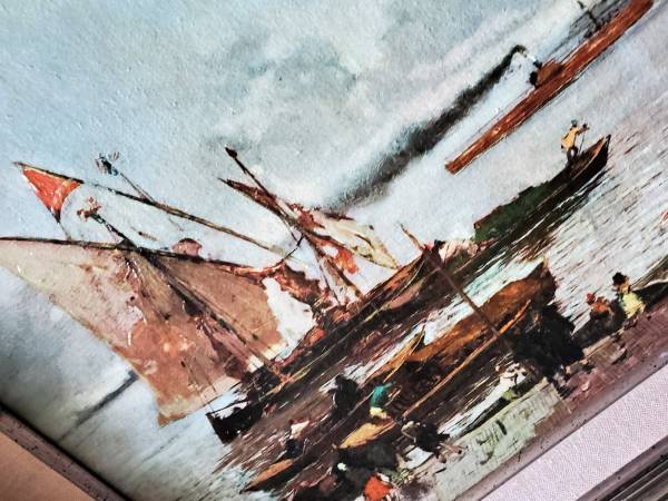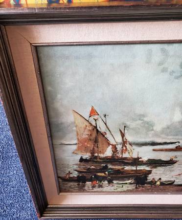 Vintage Beautiful Framed and Matted Lacquered Print of an Old Harbor Scene Canvas print that is painted over with lacquer. Makes it look like a painting. Measures 24" x 20 1/2". See my other great...