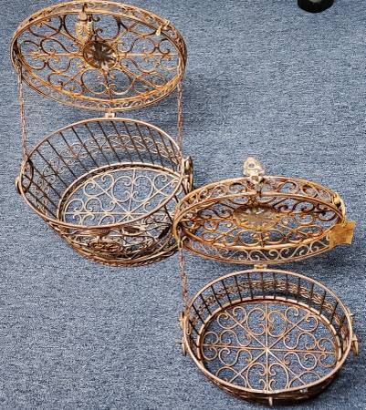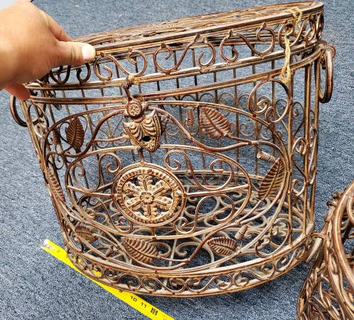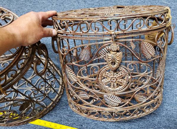 2 Large and Heavy Decorative Distressed Iron Cage Chests or Baskets