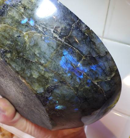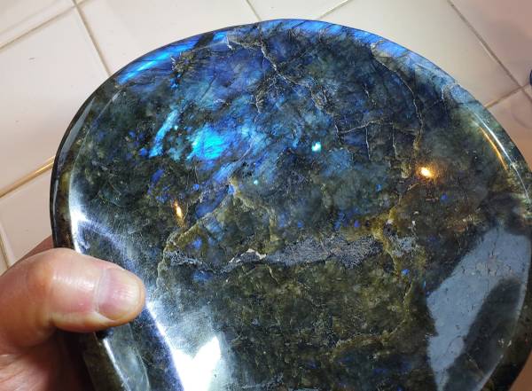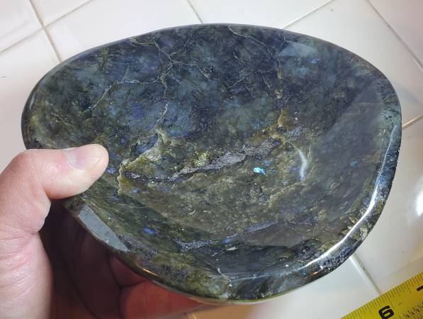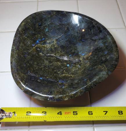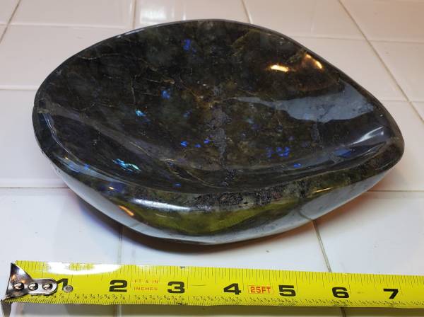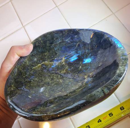 Natural Labradorite Quartz Bowl: Handmade Crystal Bowl, Tray, Ashtray, Home Decor. Handmade bowl. Amazing color flash! Larger size. See photos for measurements. Great for the gemstone collector,...