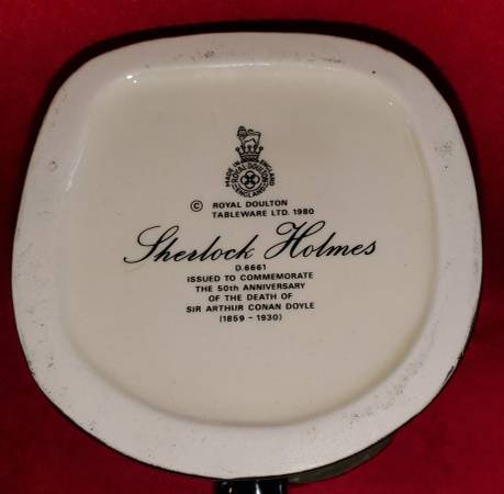 Royal Doulton Toby Jug, Sherlock Holmes Large D6661, 1980 (green hat and cloak; green-brown coat). Designed by Robert Tabbenor, issued 1981 – 1991. Size: 9”H (large). Please view photos to better...
