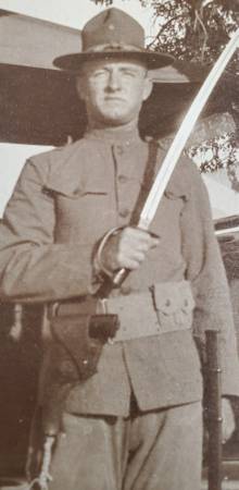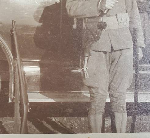 WWI Photograph of Soldier Holding Saber with Rifle and Pistol at...