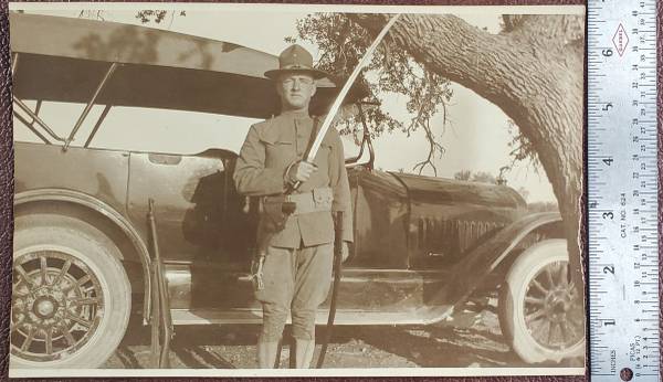 WWI Photograph of Soldier Holding Saber with Rifle and Pistol at Side Wonderful photo in excellent condition! Please view photos to better describe this item and for measurements. See my other...