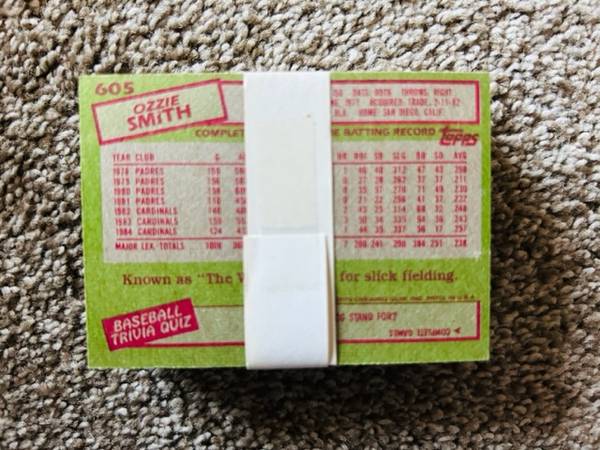 Lot of "50" 1985 Individual Topps baseball sports card of Ozzie Smith (card #605). Factory sealed. Cards in mint-condition.