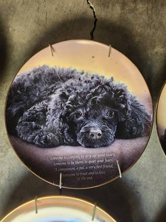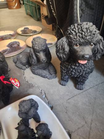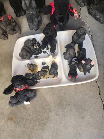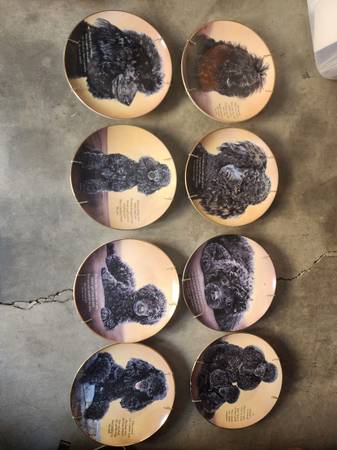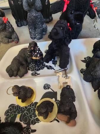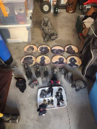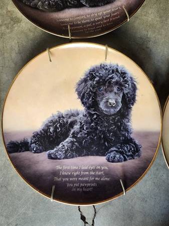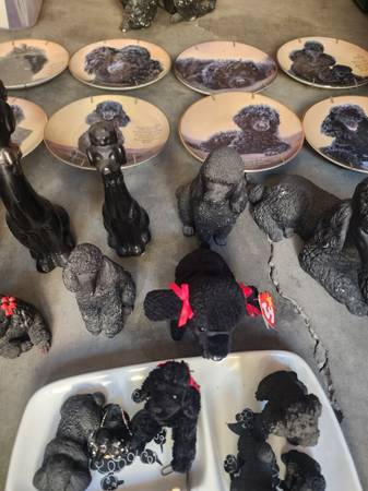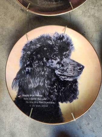 Poodle collection all together as a lot. Collectible plates and figurines.