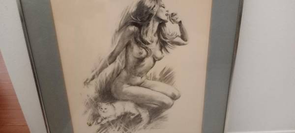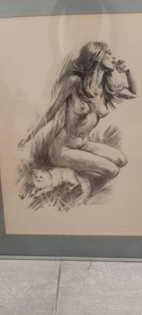 Female nude poster with signature. Poster in glass frame. Width 23 inch Height 29 inch Only $40. Less than frame price.