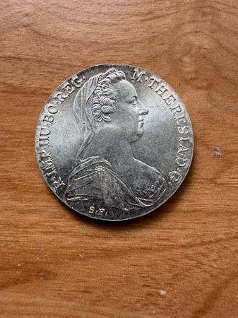 Austria. 1 thaler 1780 sf light wear with most designs and detail intact and clear ,with same luster and eye appeal. graded about EU 55 Beautiful coin.