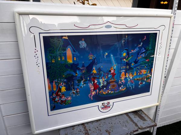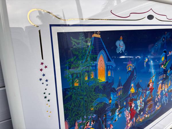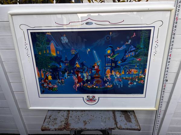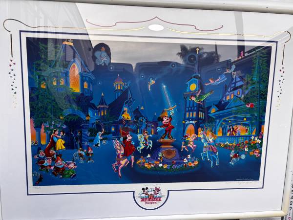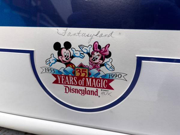 Disney Melanie taylor Kent Disneyland "Fantasyland" fantasy land piece signed autographed and numbered 86/250, dated 1990. Ready to wall hang art piece 1955 - 1990 35 years of magic Disneyland anniversary art piece. 52.5" long 38" tall.