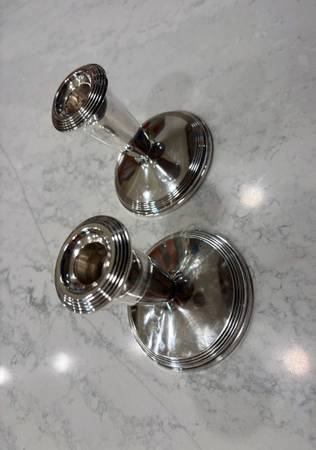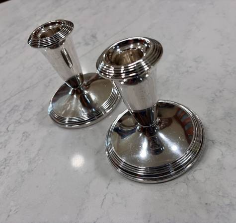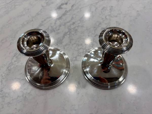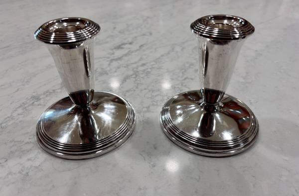 Pair Vintage Fisher Sterling Weighted 3 Inch Candlestick Holders model 807. 925 sterling silver candlesticks. Ready to use and enjoy. 4" tall 4" diameter.