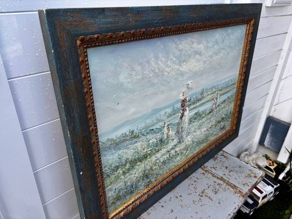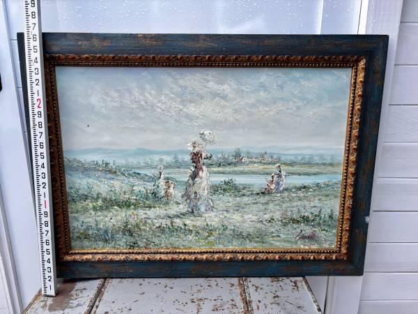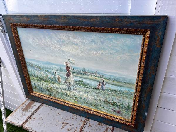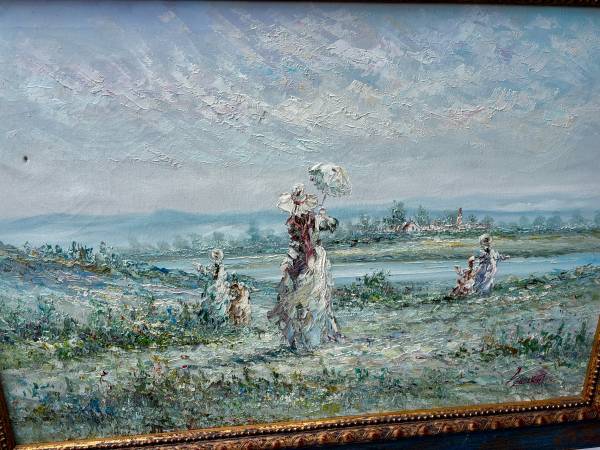 Signed Marie Charlot Original Art painting Oil On Canvas Signed Fashion Women On Beach. French impressionist. 43" x 31" framed size. Ready to wall hang.