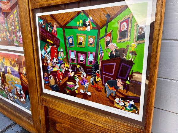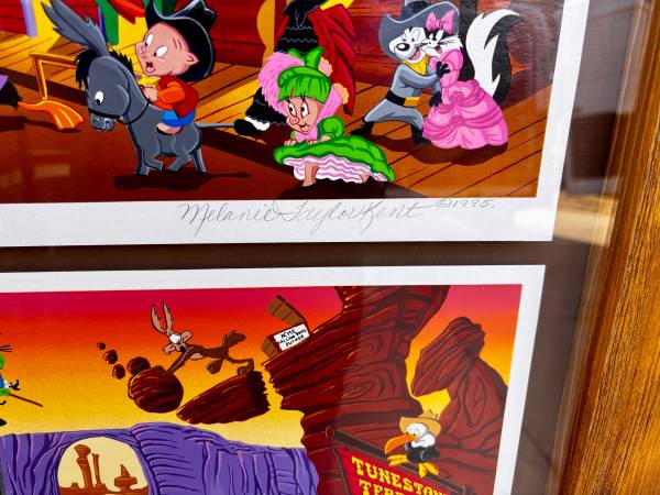 Signed Warner brothers Looney Tunes Western Suite of 4 Melanie Taylor Kent Limited Edition Serigraph on Paper. Signed autographed by the artist.