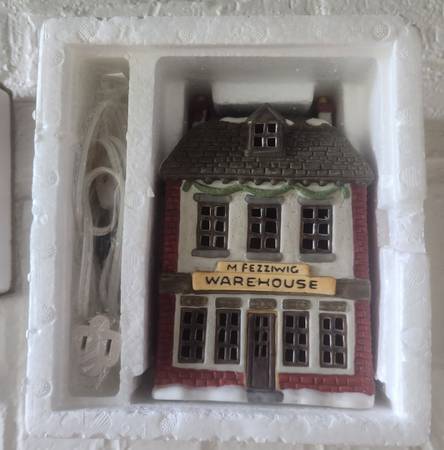 Dicken's Village Dept 56 with original packaging. Bob Cratchit & and Tiny Tim - $33 Fezzwig Warehouse - $30