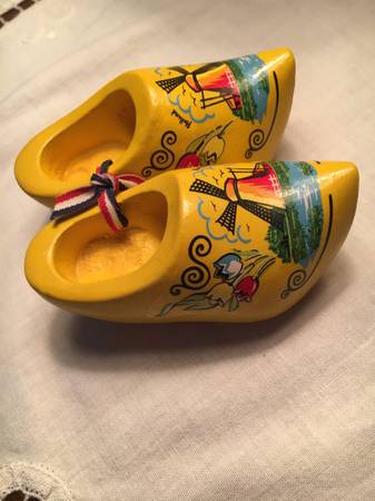 Pair Blue Delft Ceramic clogs -$5