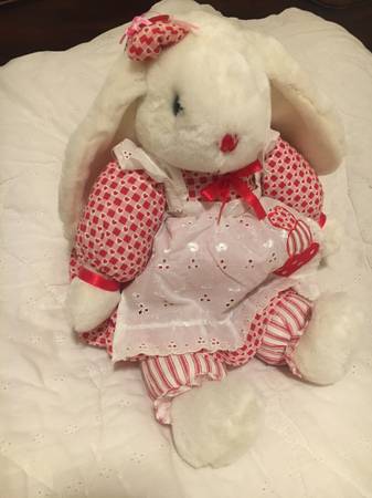 Vintage 1996, Fordlet International LTD, 18" White Bunny Rabbit with Red Hearts - $20