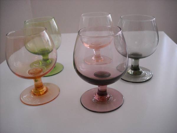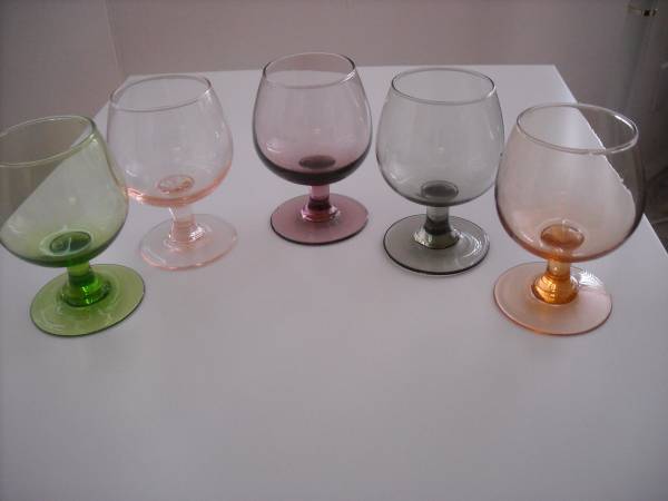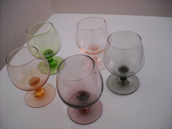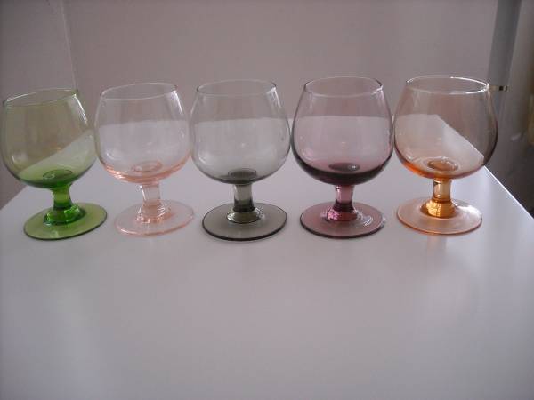 VINTAGE SET OF 5 COLORED, CRYSTAL SNIFTERS - $20