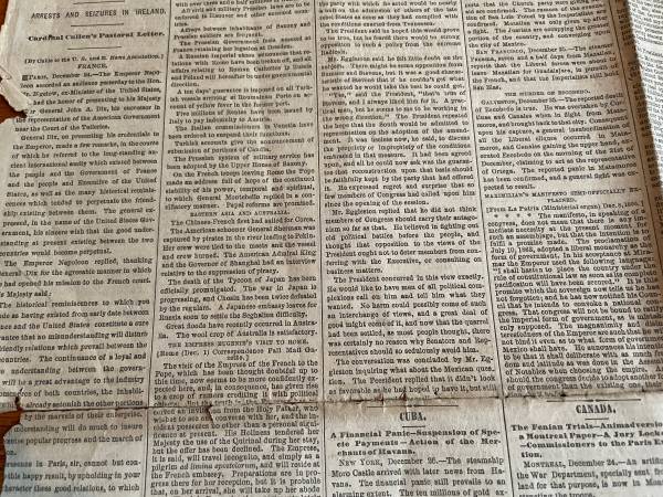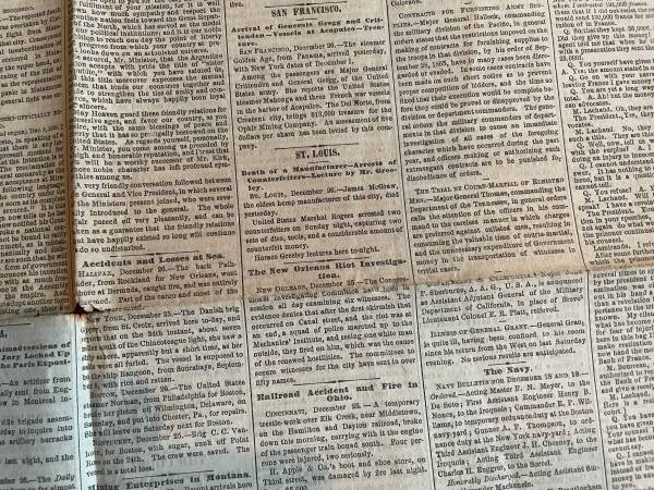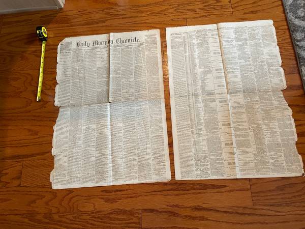 GREAT SHAPE ! 1866-DAILY MORNING CHRONICLE - 25.00 CALL --- THE REAL THING, THANKS
