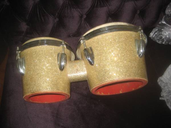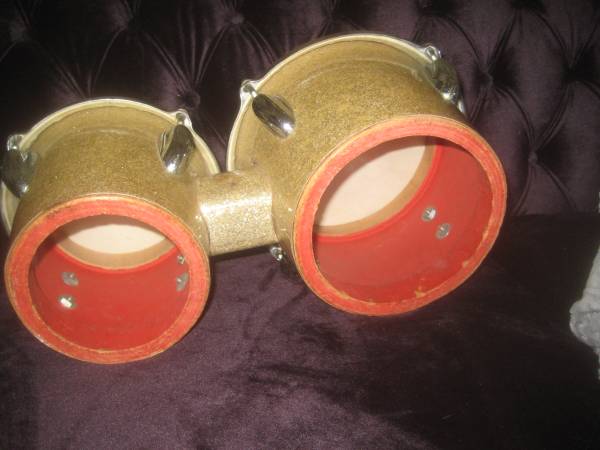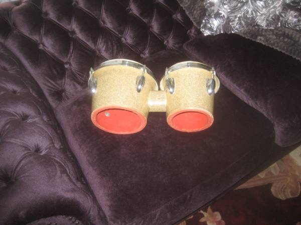 VINTAGE BONGO DRUMS, METAL FLAKE ?? COLOR 30.00 CALL THANKS