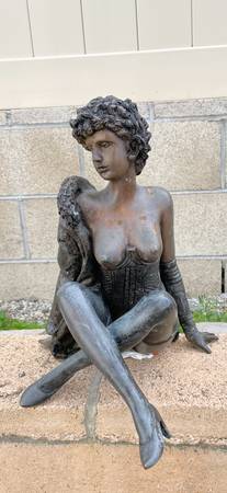 FRENCH BRONZE MOULINE BURLESQUE EROTIC FEMALE FIGURINE STATUE, ASKING 250.00, CALL , THANKS---- 14 tall ,, 10 in wide