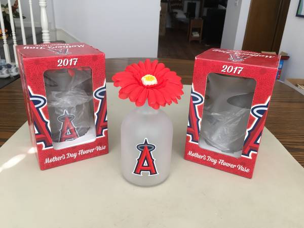 Los Angeles Angels promotional giveaway for 2017 Mothers Day game. 6 1/4” high, 3 1/2” base diameter. Boxes never opened. NOTE: One for $8, two for $12.