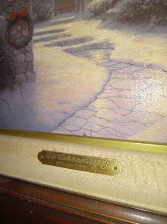 1990 Thomas Kinkade Christmas Cottage Painting Only 500 Made, Frame Has Some Damage