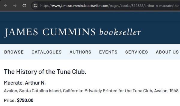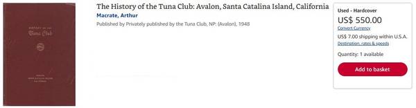 History of the Tuna Club: Avalon, Santa Catalina Island, California hardcover book. $500