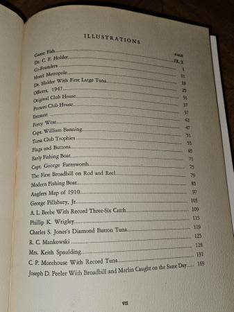The book contains information on: the early history; constitution; incorporation and by-laws; club house; annual tournaments; affiliated clubs; guides and boatmen; tackle and bait; fishing grounds; conservation, etc.