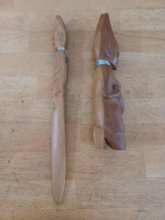 Vintage African hand-carved wooden totem and matching fork, spoon and knife set wall décor. Hand-made in Kenya. See individual pricing below.