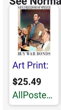 (4) Vintage collectible Norman Rockwell "Freedom Series" prints. Veterans of Foreign Wars of the United States. The Curtis Publishing Company. (Approx. 8-1/2" x 11") $20 each