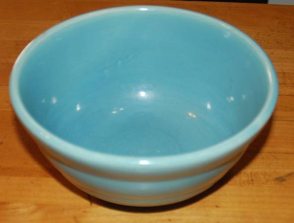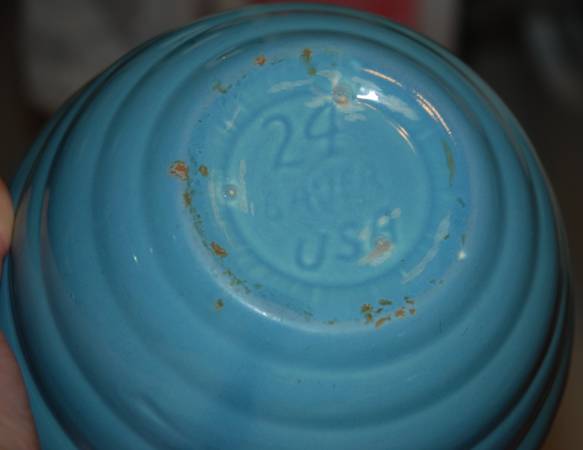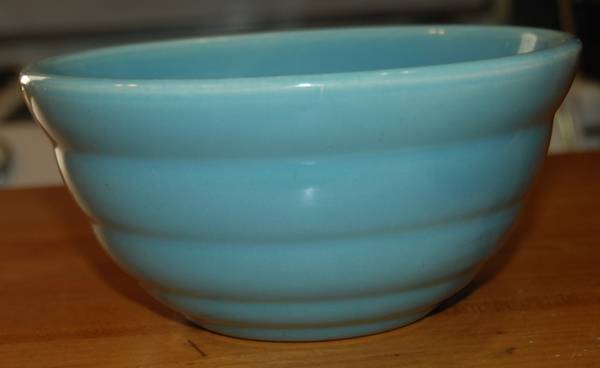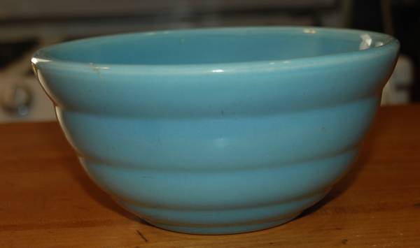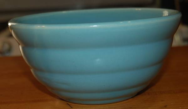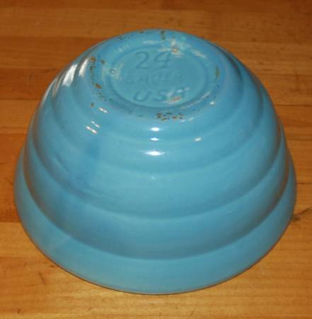 1940's BAUER POTTERY #24 Lite Blue Ring Ware BEEHIVE Vintage Mixing Nesting Bowl USA Beehive rings Measurements: approx. 7 1/4" across top and 3 1/2" high. Stamp marks on bottom
