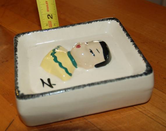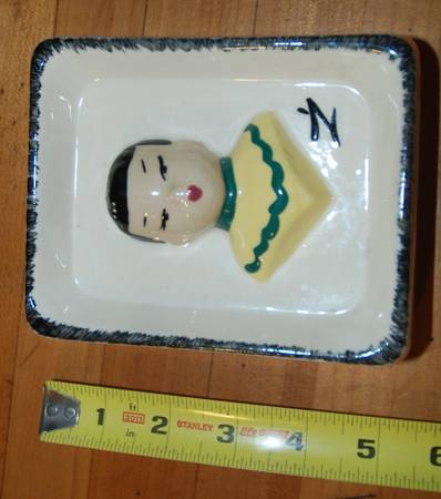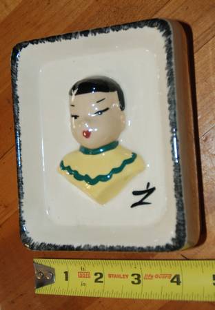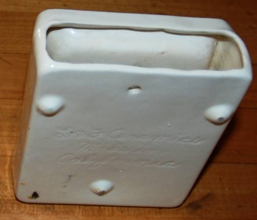 1950's Square Wall Hanger Planter with Girl. Ceramics Made in California 5"x 5" The Chinese character on the Vase says 'wise person' with good intentions.