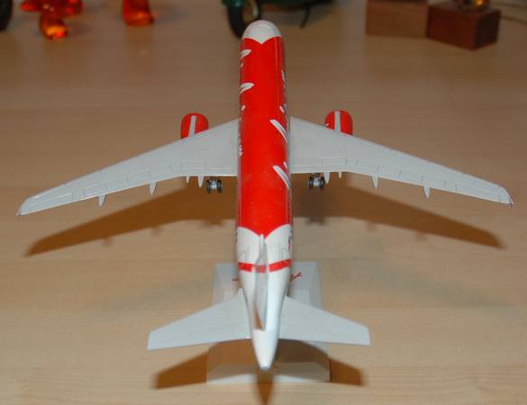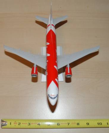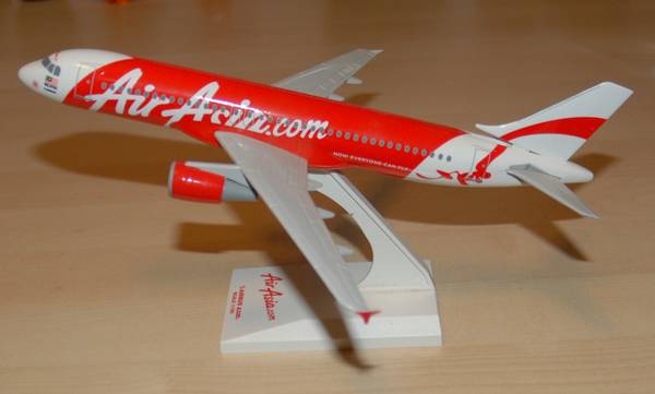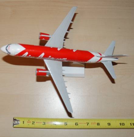 Aircraft Model: Air Asian.com model airbus A320 (Scale 1:150) Metal body and vertical stabilizer(rudder). Hard plastic motors, wings, tail horizontal stabilizer. 11" x 11"